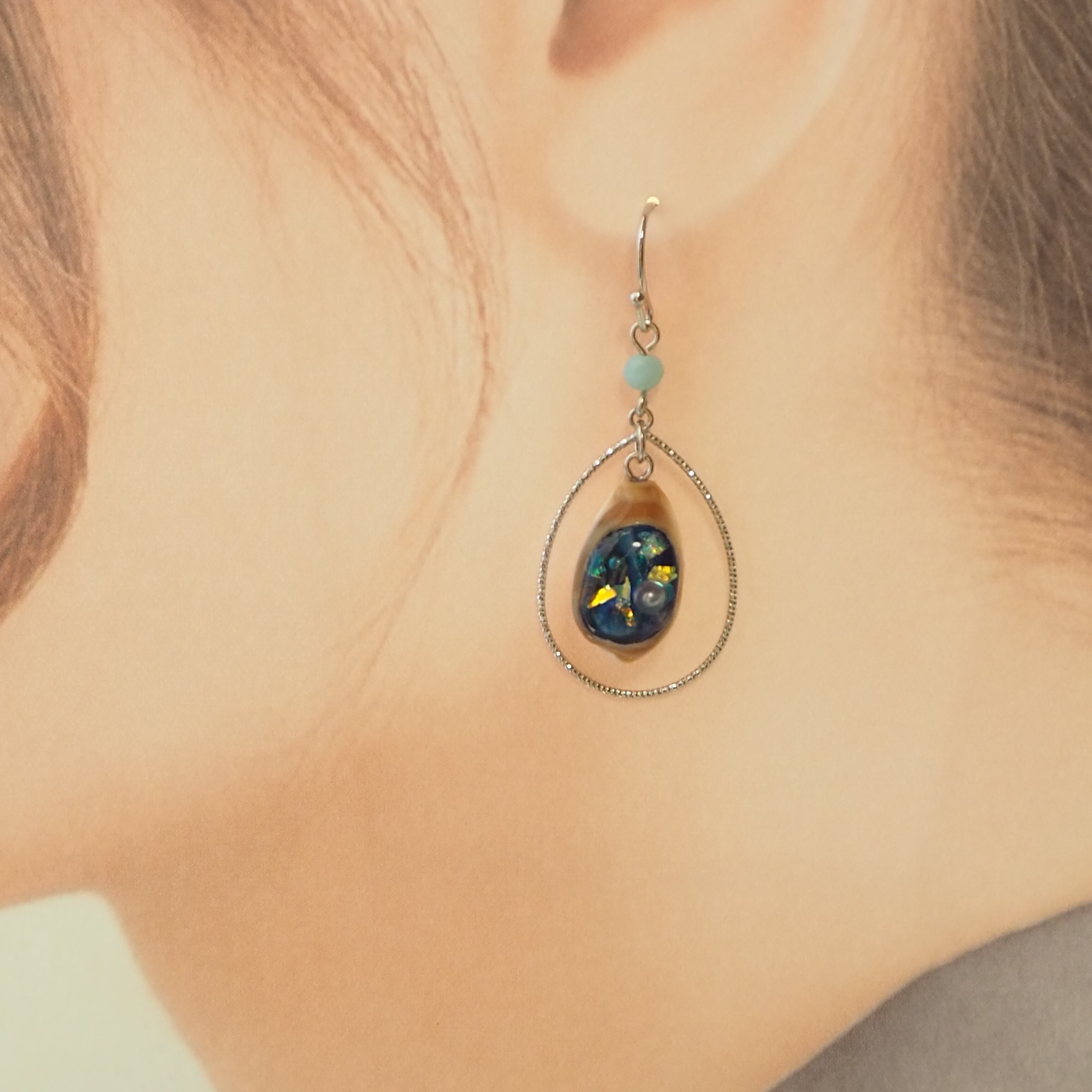 タカラガイのシルバーフープピアス