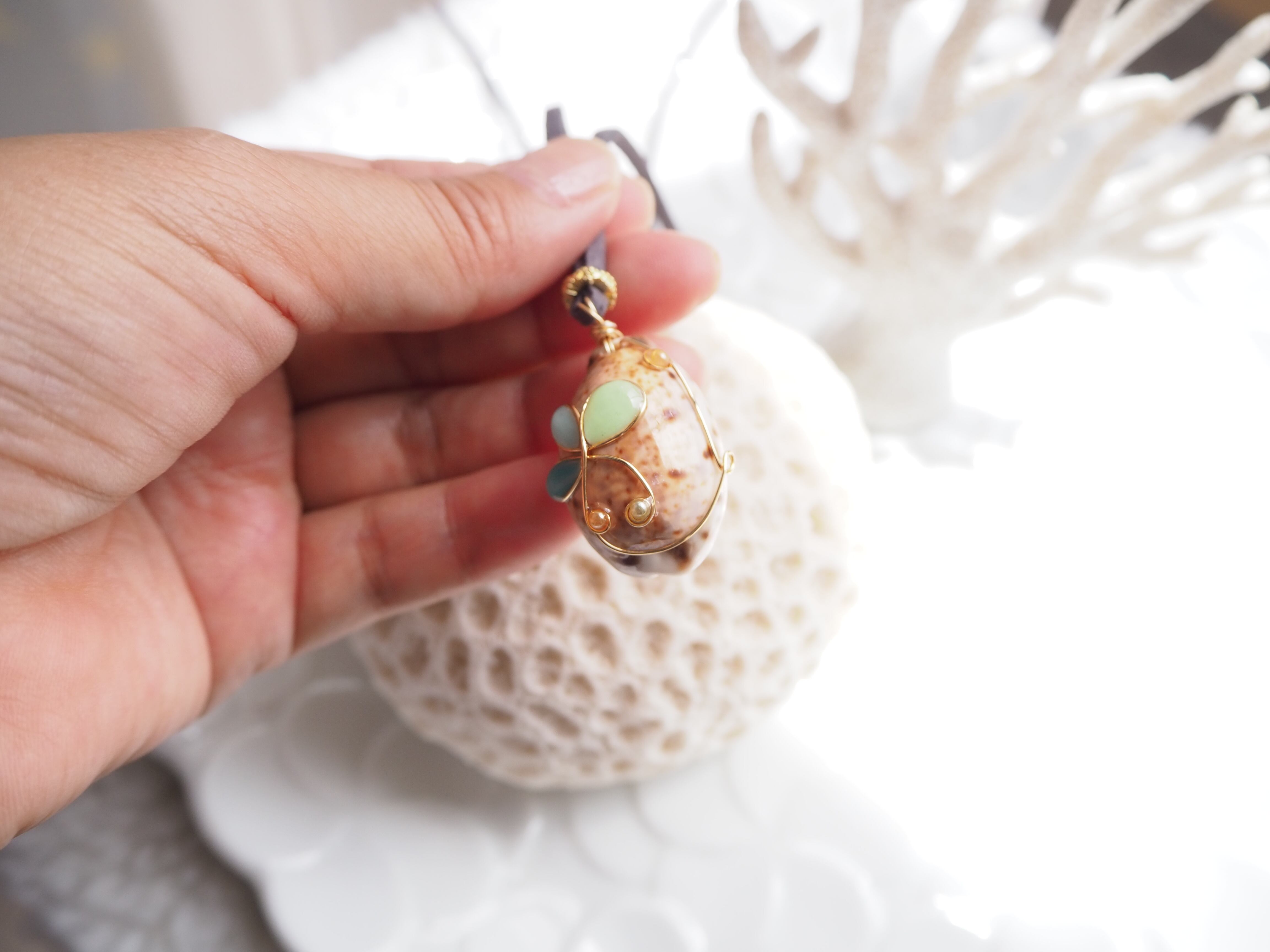 コロンとしたタカラガイにワイヤーで可愛くオシャレをしました♡