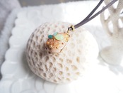 アーティスティックワイヤーで、モチーフをまとって、レジンで可愛く色を足して、海が似合うネックレスにしました。